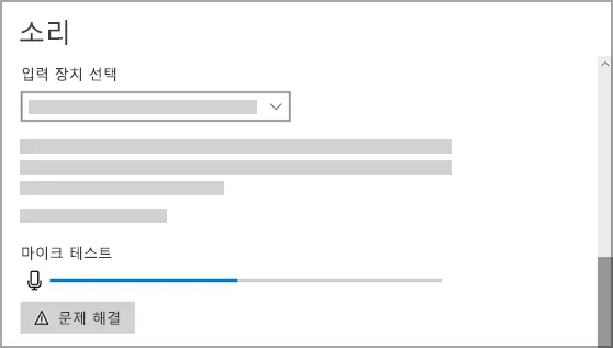 입력에서 입력 장치 선택에 마이크가 선택되어 있는지 확인합니다.