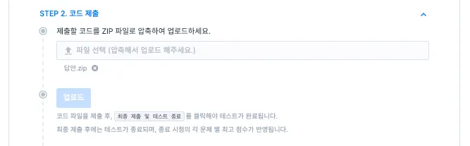 업로드 후 오른쪽 상단의 최종 제출 및 테스트 종료 버튼을 클릭해 최종 제출합니다.