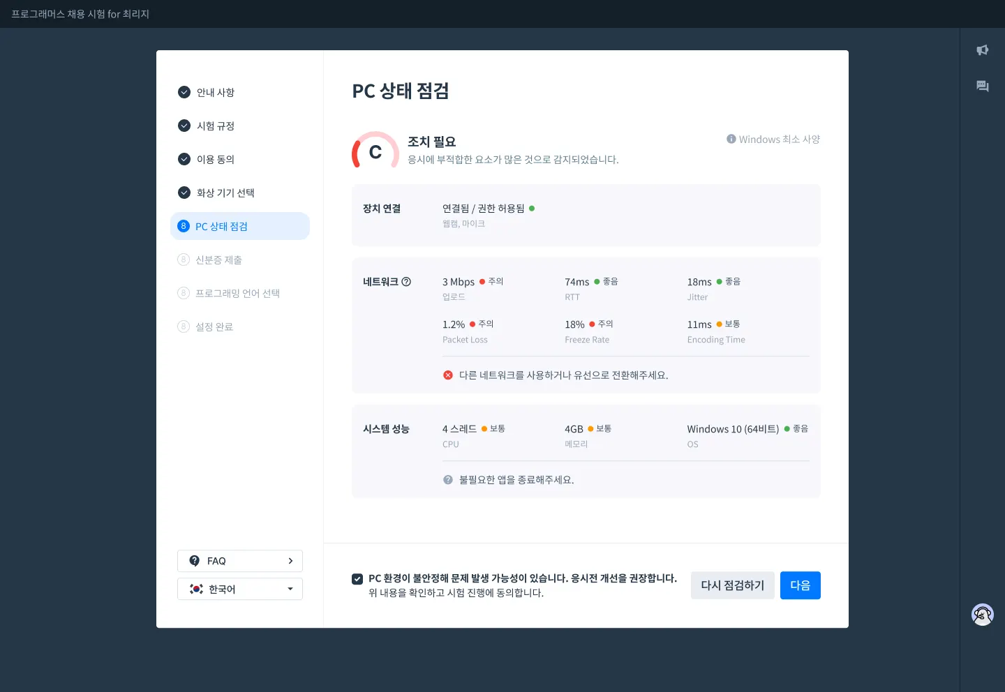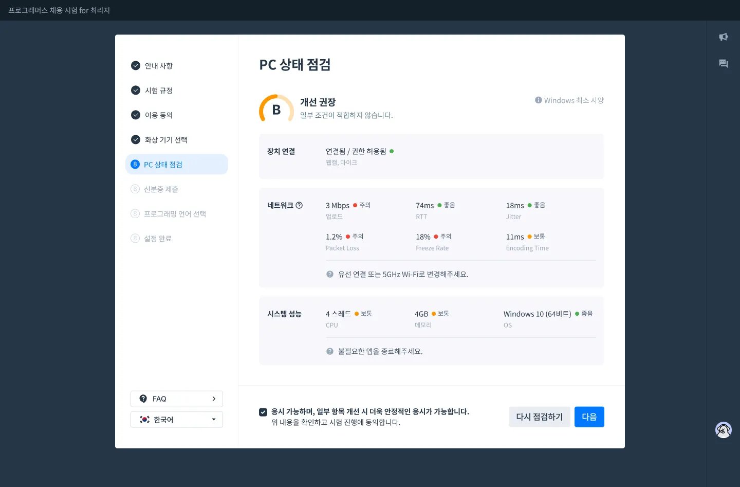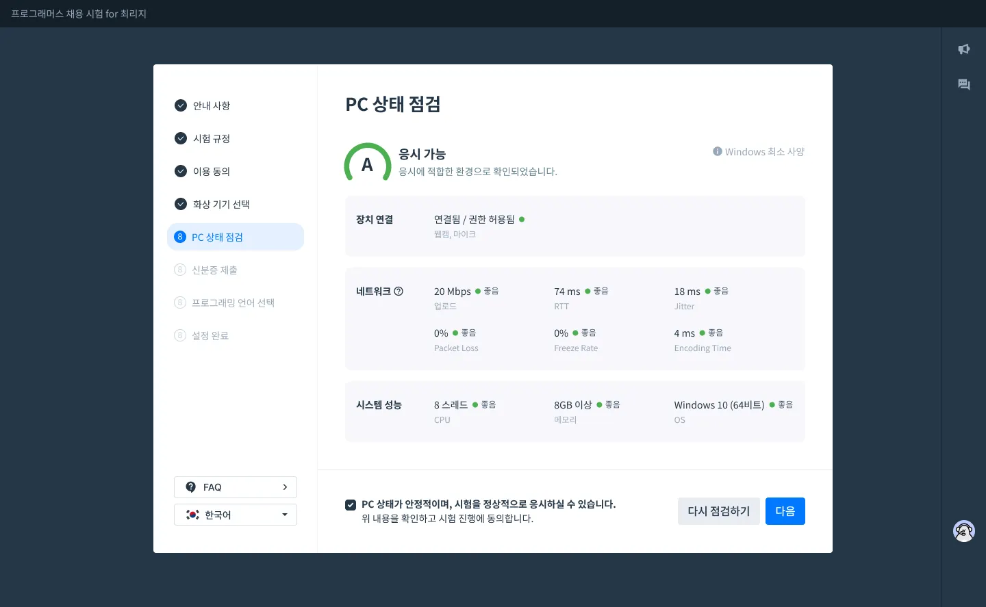 μ κ² κ²°κ³Ό νμΈ ν νλ¨μ 체ν¬λ°μ€λ₯Ό νμΈν ν λ€μμΌλ‘ μ§νν©λλ€.