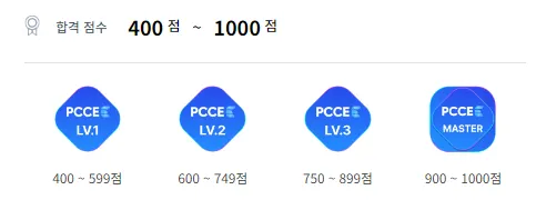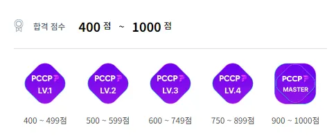 400점 이상인 경우부터 Lv1을 부여받으며 PCCP는 총 5개 레벨, PCCE는 총 4개 레벨로 구분됩니다.