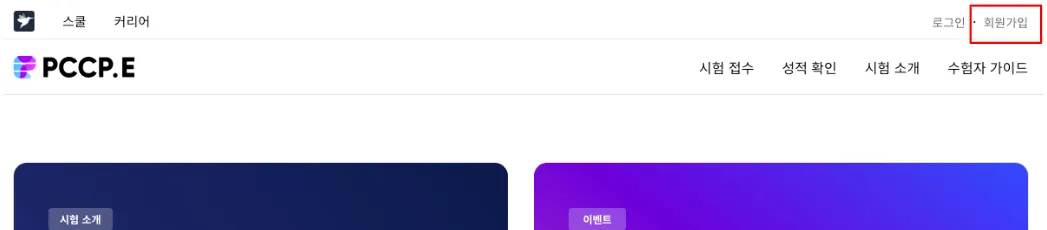 먼저 사이트에 접속해 오른쪽 상단 회원가입을 클릭합니다.