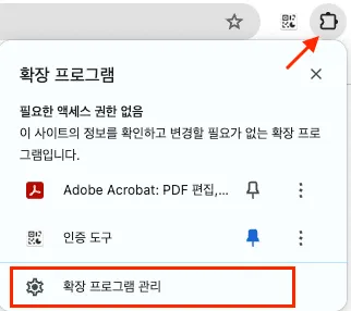 주소창 우측 아이콘을 클릭해 실행 중인 확장 프로그램을