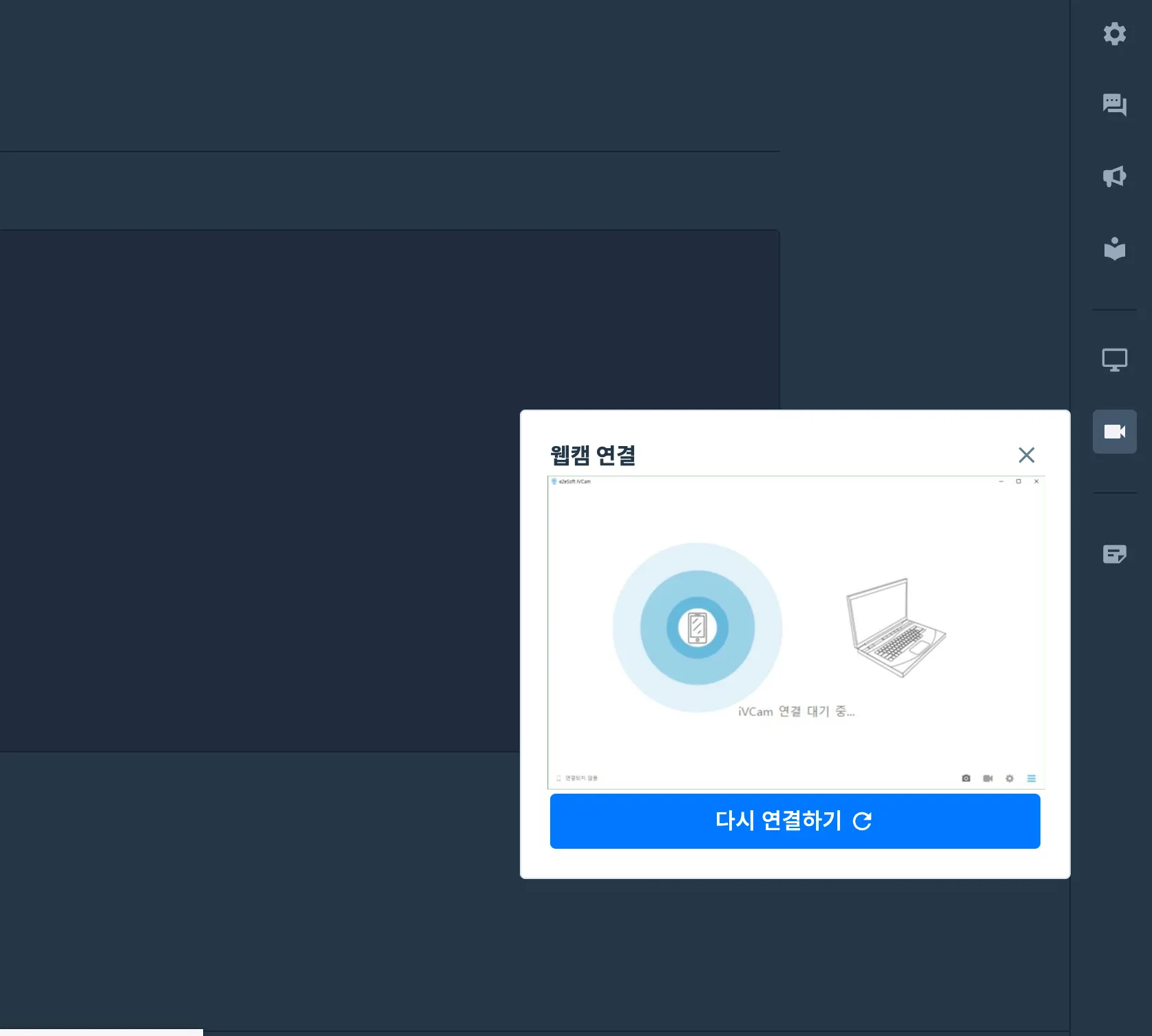 페이지 새로고침 후 IVCAM이 아닌 기본 웹캠 카메라를 연결 해주세요.