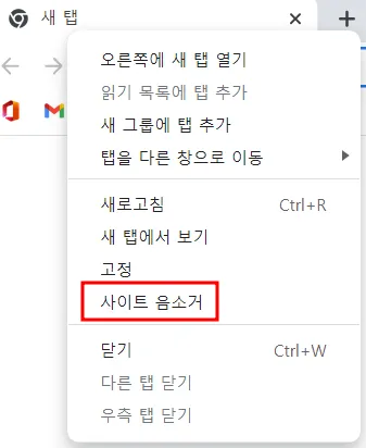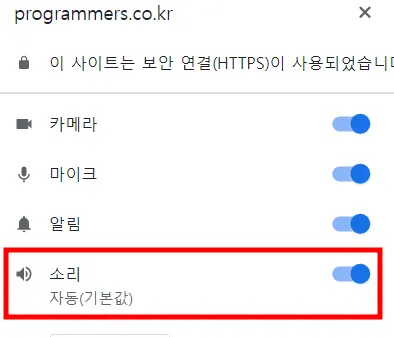 주소창 왼쪽 자물쇠를 클릭해 소리 항목이 허용 상태인지 확인