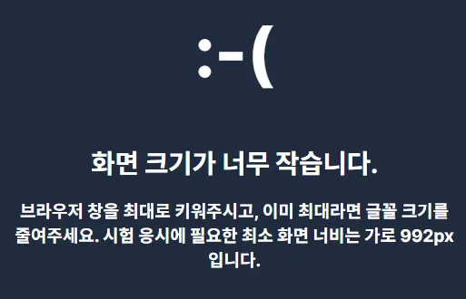 시험 페이지는 모바일폰 및 태블릿 기기로는 응시할 수 없습니다.