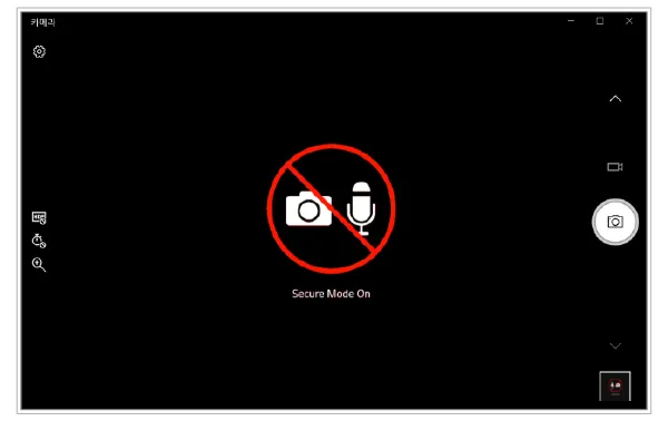 보안 모드(Secure Mode) 기능이 켜져있다면 카메라 사용이 어려울 수 있습니다.