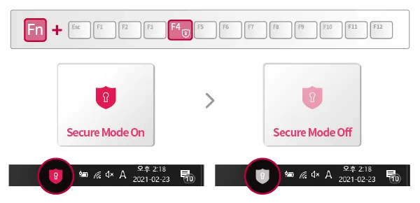LG 노트북에는 해킹의 위협과 사생활을 침해할 수 있는 카메라와 마이크 사용을 차단하여 불안감 해소 및 보안을 강화해 주는 [Secure Mode] 기능이 탑재되어 있습니다.