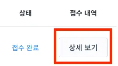 접수 내역 목록 중 취소하려는 내역의 ‘상세 보기’를 클릭해주세요.